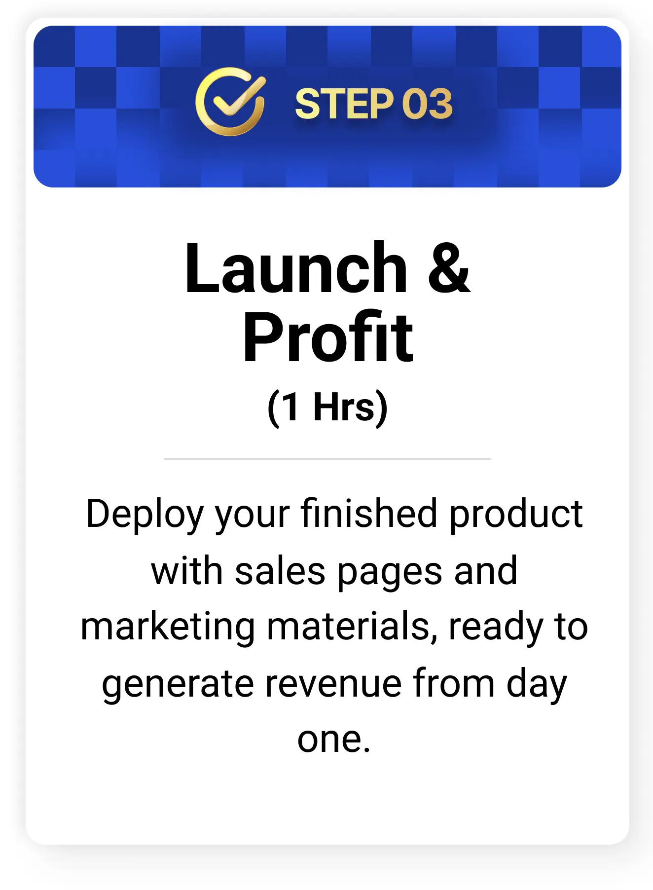 You'll have your product fully mapped out in 60 minutes or less. Some users have made their first sales within 24 hours of launching.