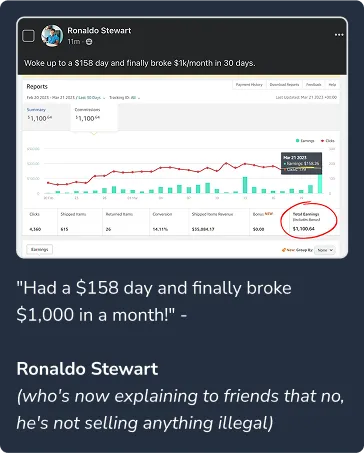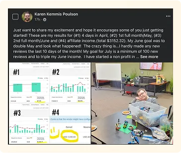 Note: These results are not typical and not a guarantee of earnings. Your results may vary based on effort, product selection, and market conditions. Some people will do nothing and earn nothing, which is about as