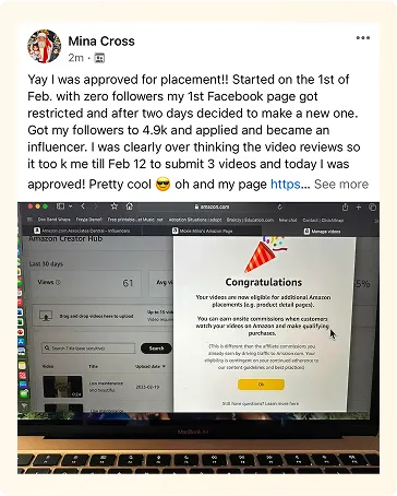 Gets you approved for Amazon's Influencer Program